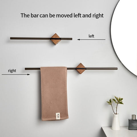 This exquisite single bar towel rail is a beautifully simple design that marries timber and black acrylic for a striking bathroom statement.
